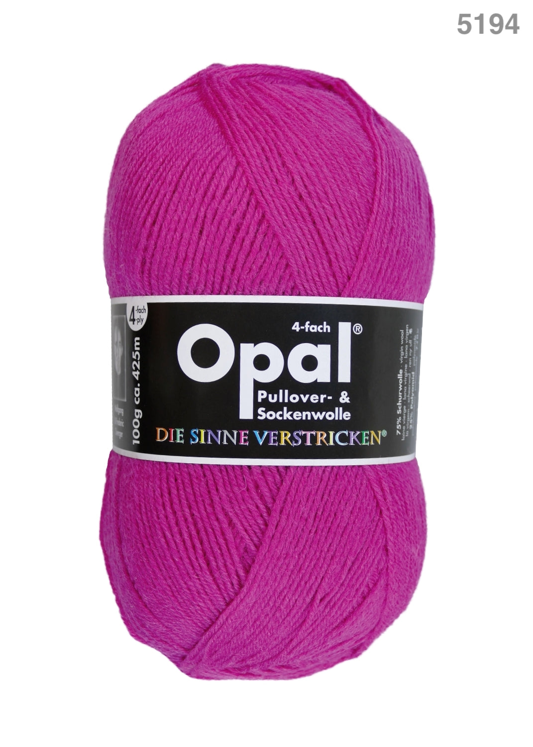 Same great hard-working, high-quality wool blend base yarn as Opal's famous self-patterning yarns, but in classic solid colours. Great for accents like heels and toes, or for classic or elaborate designs. Manufactured in Germany to strict European standards. One ball will make a pair!