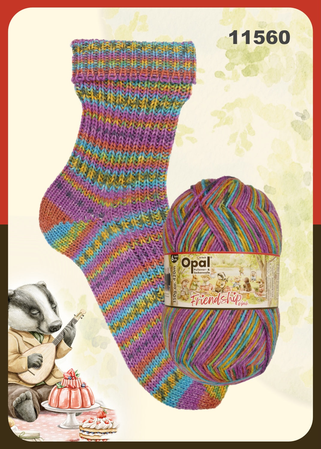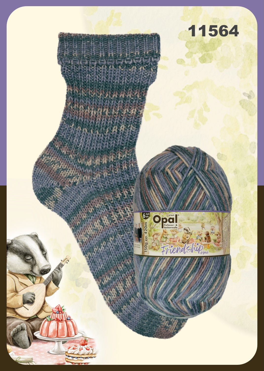 Opal 6-ply combines all of the great characteristics of Opal's classic sock yarn in a slightly heavier weight. The 150g put-up has only 5 fewer metres than 100g of the 4-ply, meaning there's loads of yardage to work with. It's a great choice for hard-wearing, washable kids' garments, too! Check out the coordinating solids, here.