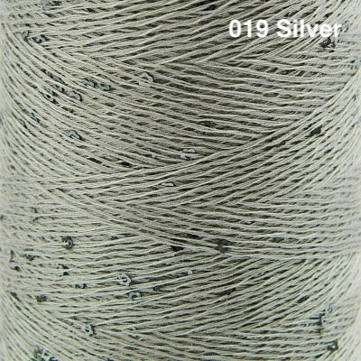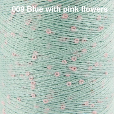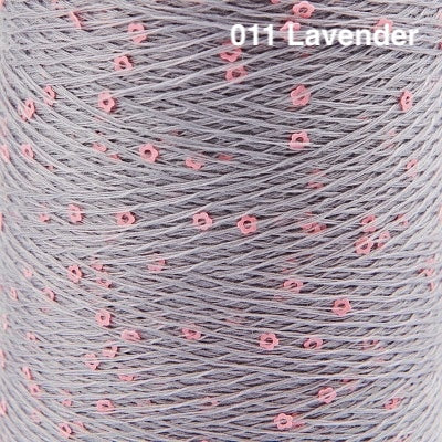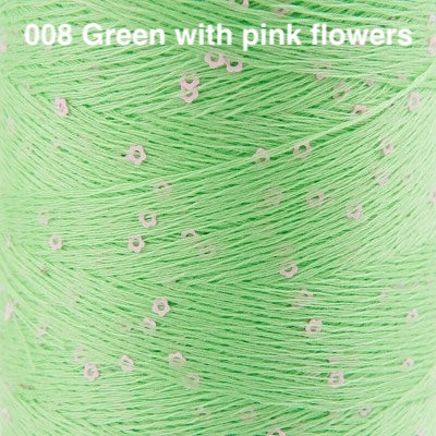 This delightful carry-along yarn consists of a fine rayon thread studded with tiny flower-shaped sequins. Hold it together with a main yarn to add subtle sparkle to garments and accessories. We suggest slipping the cone into a ziplock storage bag or onto a yarn holder while knitting, so that it unwinds smoothly off the cone.